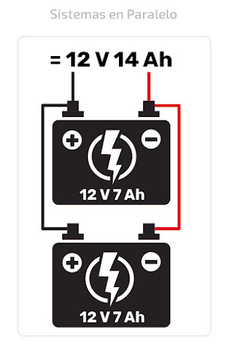 La conexión de baterías en paralelo, es cuando conecta dos o más baterías juntas para aumentar la capacidad de Amperes-hora (Ah), sin embargo, el voltaje de la batería seguirá siendo el mismo. Por ejemplo, si conecta dos baterías de 12 V 7 Ah en paralelo, obtendrá como resultado un voltaje de 12 voltios y una capacidad de respaldo de 14 Ah.